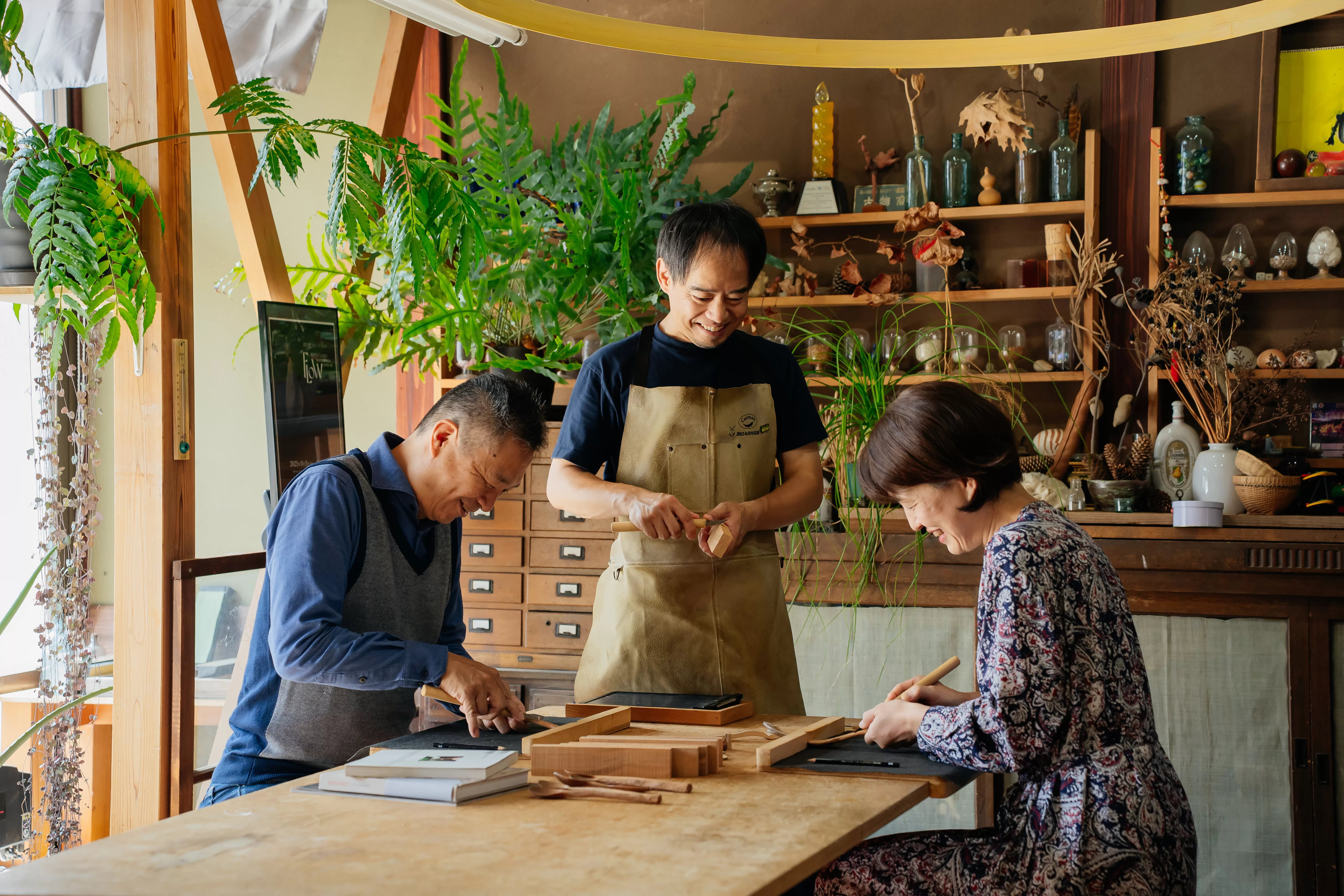 職人の工房へ行き、職人と同じ道具を使って、実際に教えてもらいながら本格的な体験ができます。