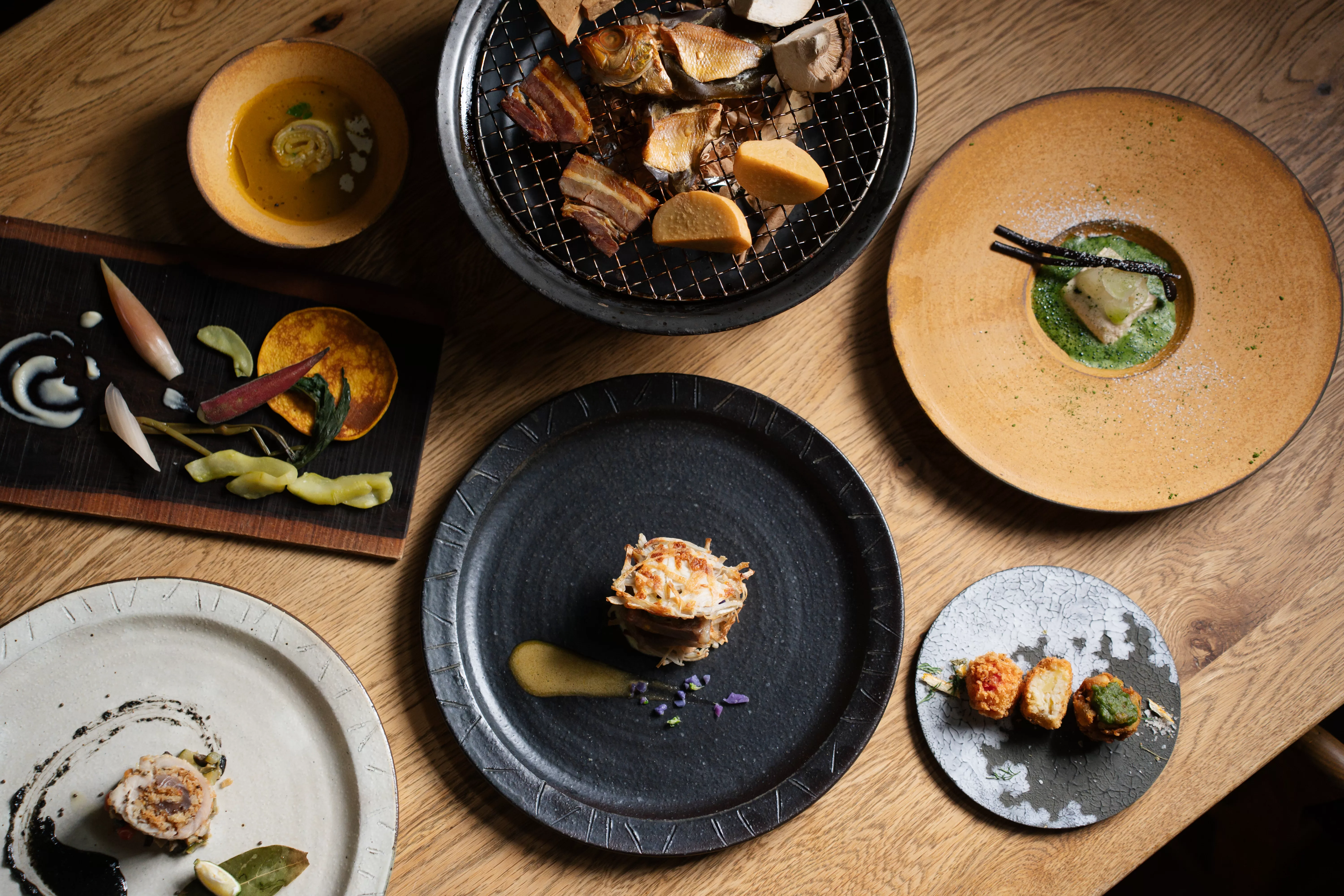 ご夕食付きプランをご予約のお客様には、燻製料理と創作イタリアン「nomi」にてコース料理をご用意させていただきます。地元でとれた旬の食材を中心に使用した前菜、燻製料理の盛り合わせ、肉魚料理などをご提供いたします。