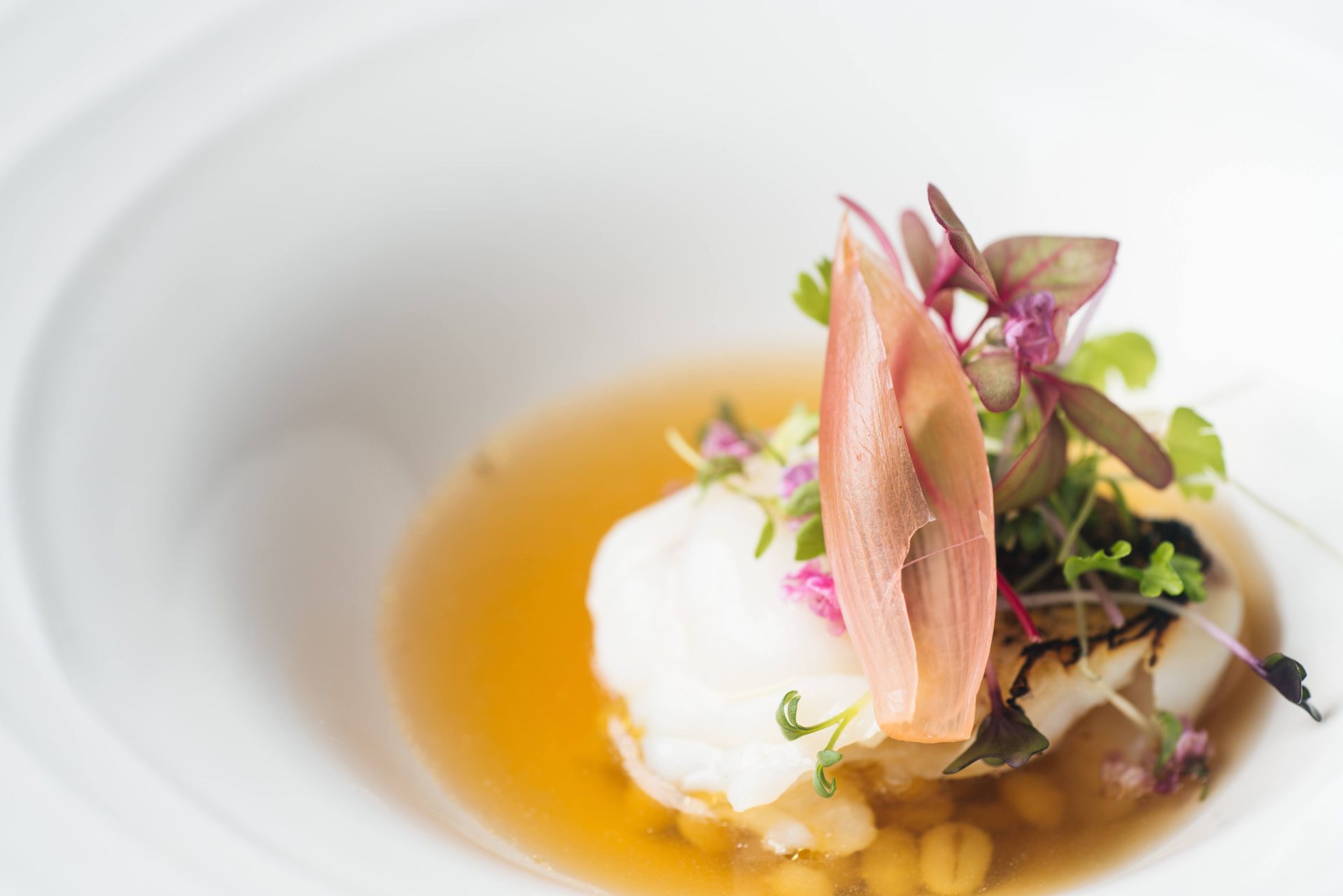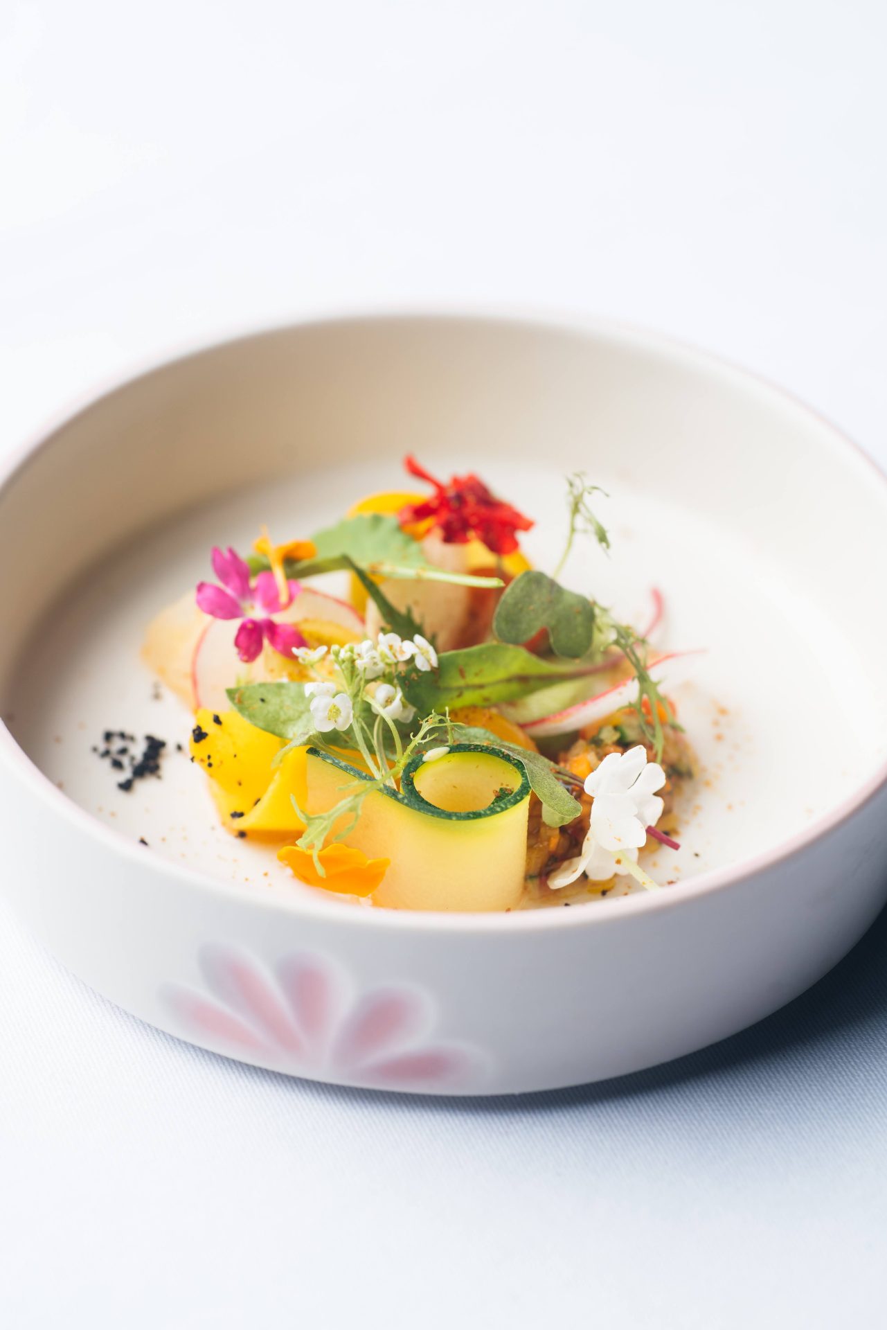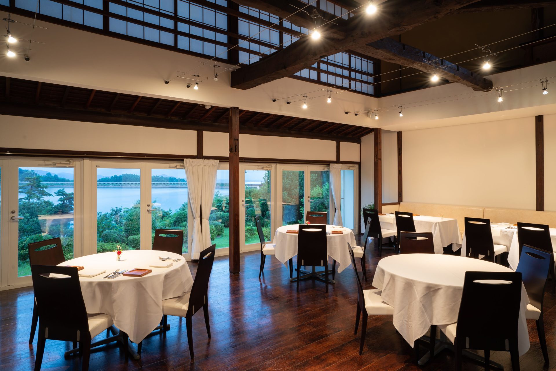 南砺の大自然、桜ヶ池の畔にあるフレンチレストラン「ランソレイエ」。オーナーシェフ高見敦司氏のフランス料理の主役は、地元の生産者さんが作る滋味に富んだ野菜たち。ランソレイエのある立野ヶ原の赤土で育った有機野菜や自然農法の野菜をメインに、氷見や新湊、能登から届く魚貝類、富山産の豚や牛など新鮮な食材が、高見シェフの手によって丁寧に、上質な料理に昇華されテーブルに並びます。 ミシュラン・ガイド北陸2021特別版で1つ星とグリーンスターを獲得したランソレイエの本格的フランス料理をご堪能ください。 ご宿泊棟からレストランまでは、【専用車にて往復送迎サービスをご用意】致しますので、運転のご心配なく、お酒と料理をゆったりお楽しみいただけます。
