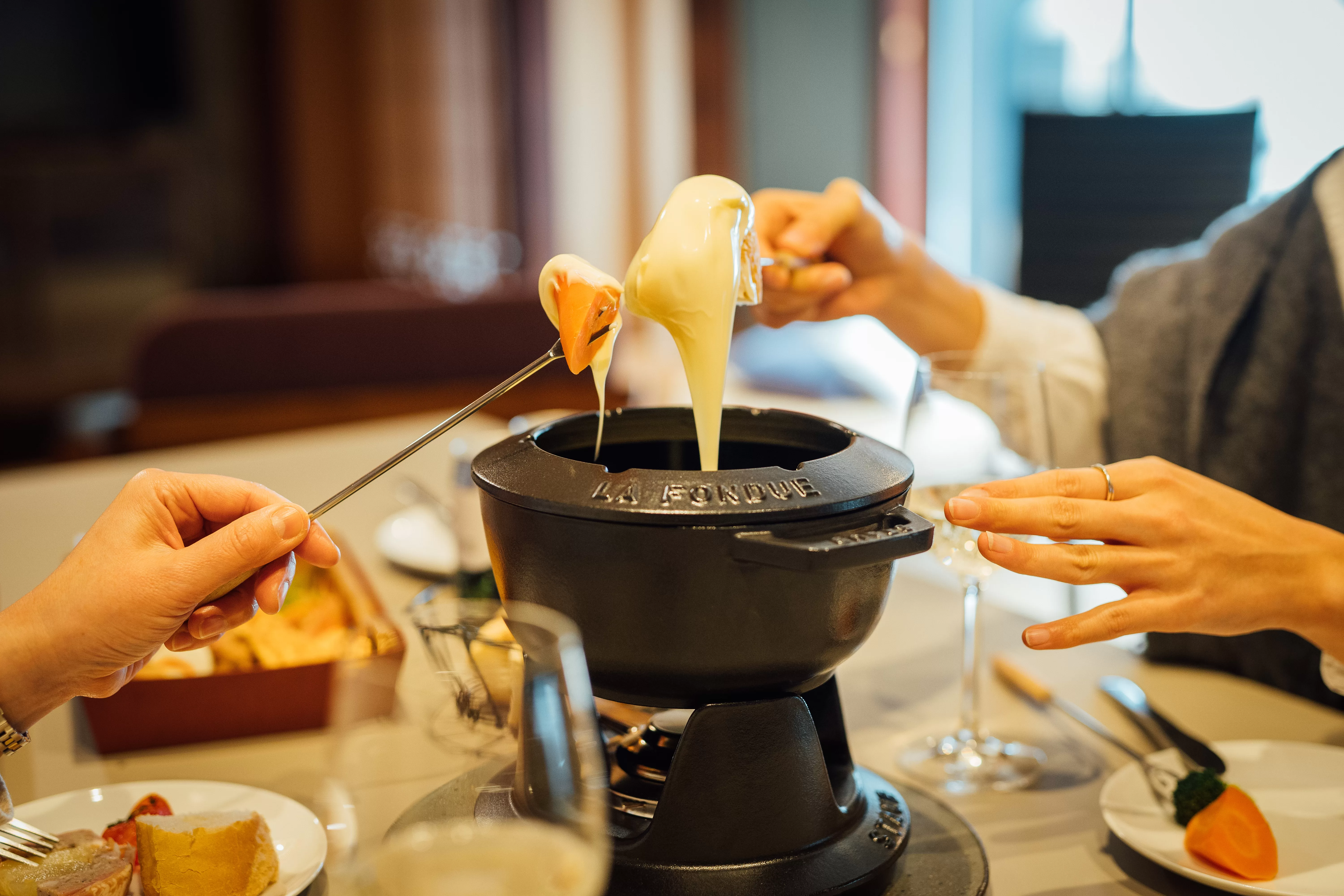外の寒さを忘れて、とろける時間を テーブルの上ではチーズがぐつぐつ。立ちのぼる湯気にほっぺたまでほどけていく ——そんな“ぬくぬく”のひとときをお部屋で。甘みの増した季節の野菜やバケット、地元の旬の食材を、とろりとまとわせて頬ばれば、体の芯からぽかぽかに。 移動いらずだから、乾杯して、語らって、そのまま二次会へ。 雪や雨の日こそ、毛布のようにやさしい時間をまとってお過ごしください。 忘年会・新年会、女子会、家族旅行にもぴったり——みんなで囲むほど、おいしさもあたたかさも増していきます。
