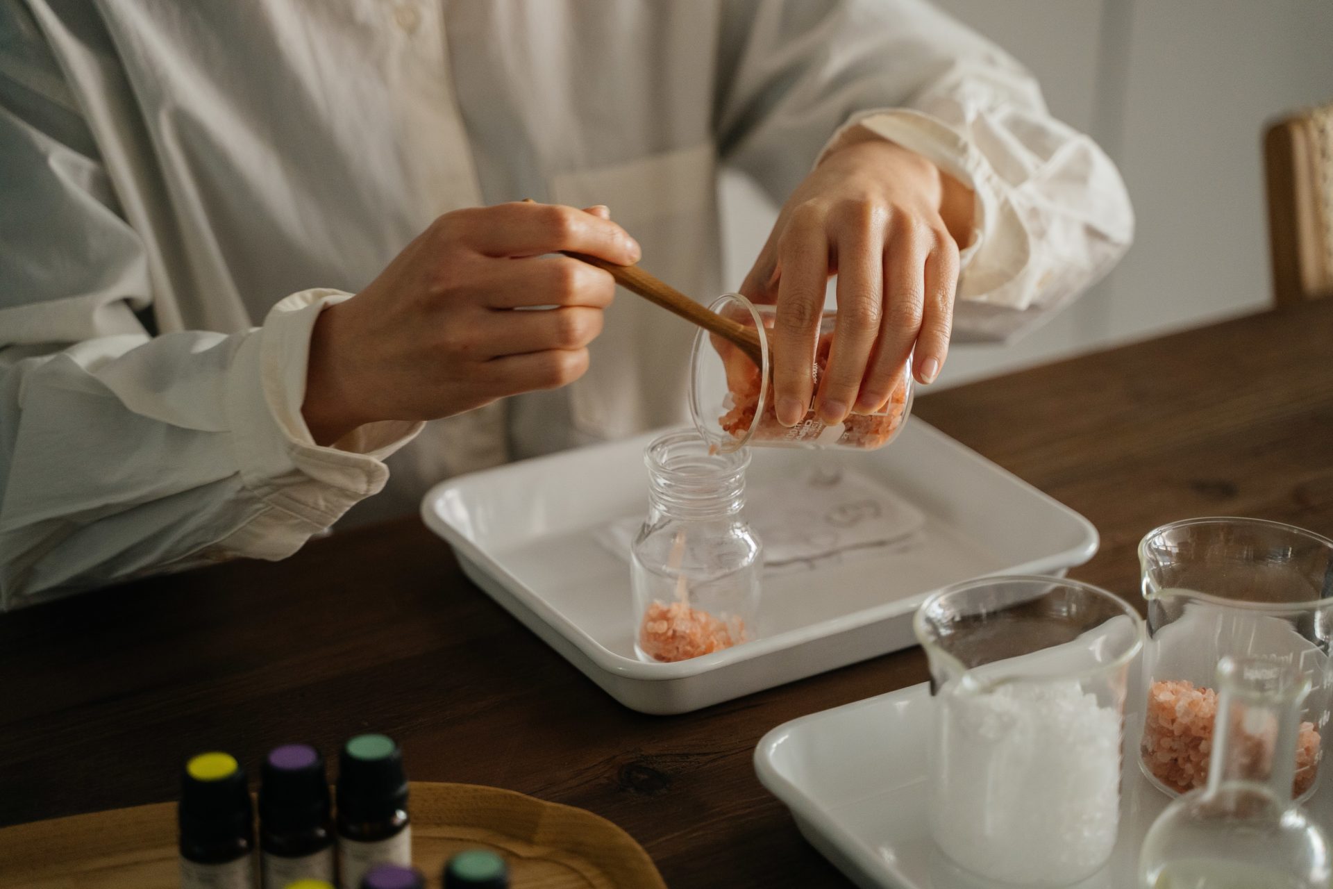 - 沐浴:エッセンシャルオイル&アロマバスソルト作り(木彫オリジナルケース付)
