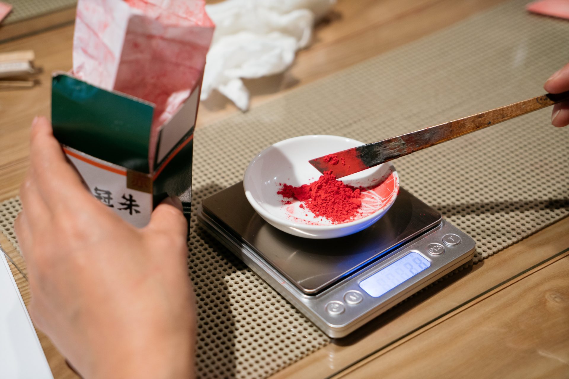 10:15 漆と顔料を混ぜて練ります。この作業が仕上がりを左右します。